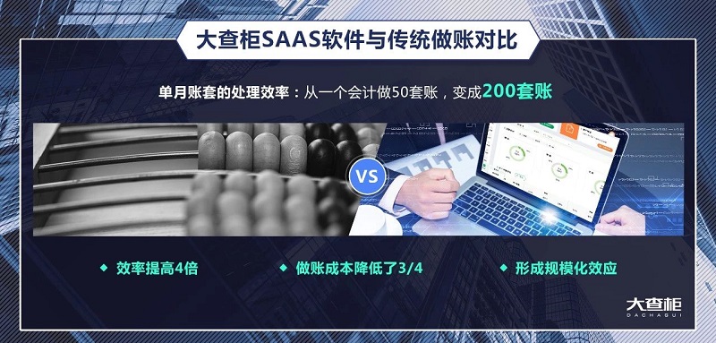 中国正在迎来企业服务市场的爆发,这一轮的驱动包括:第一,业务环节的互联网化,已经开始传导至管理环节;第二,人力成本持续上升,企业需要通过IT系统提高效率、降低成本;第三,移动互联网的普及;第四,创业潮对基于云端的企业服务提出非常广泛的需求。 欧美地区几乎每家企业都会提供30到40种SAAS服务,而在我国这类企业则寥寥无几,吴江以此为突破口,决心助力打造大查柜成为云端资源整合的SAAS服务平台。 大查柜财税软件基于OCR、RPA、机器学习技术,对接税务总局接口,解决做账报税全方位需求功能。涵盖功能:票据OCR采集、自动入账、生成报表、智能分析、批量处理,对接各地区财税接口,一键报税。智能财税软件内同步研发CRM客户关系管理系统,帮助代理记账公司实现有效的客户管理和市场销售管理。从而帮助中小微企业拥有专业财务服务及运营支撑,解决企业后顾之忧,驱动企业持续增长。